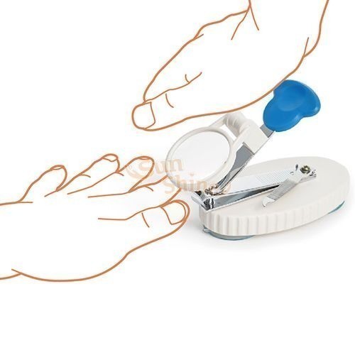 PRODUCT DA-5222 Nail Clipper With Magnifier ● Base Size / 100 x 56 x 14mm ● Weight / 80g ● Magnification / 4x Description This nail clipper has a suction base to secure it on a non porous surface and magnifier makes nail clipping easier to see without having to bend right over. Back