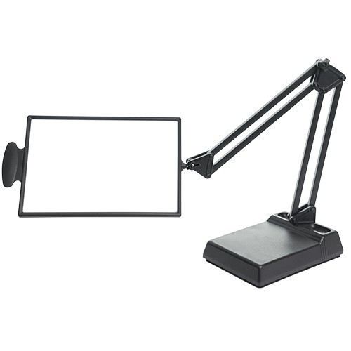 PRODUCT RA-6414 Table Stand Magnifier ● Base Size / 195 x 130 x 45mm ● Lens Size / 240 x 164mm ● Weight / 1.4kgs ● Magnification / 4x Description The lens can be adjusted for height and angle into any position and can be used for a wide variety of applications including reading, writing, sewing, embroidering, etc. Back