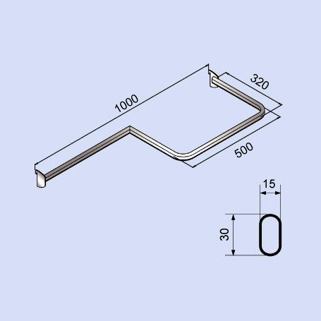 PRODUCT SO-2112 Co-Ordinate Rail Fits for 50mm pitch of upright, oval tube size 15x30mm, finished in chrome. Description lDepth: 320mm lLength: 1000mm lOval Tube: 30 x 15mm lThickness: 2mm Back