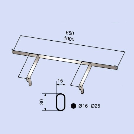 PRODUCT SO-2219 Straight Rail Suitable for 50mm pitch of upright, oval tube size 15 x 30mm, finished in chrome. Description SO-2219-650 lLength: 650mm lOval Tube 30 x15mm lThickness: 2mm SO-2219-1000 lLength: 1000mm lOval Tube 30 x15mm lThickness: 2mm Back