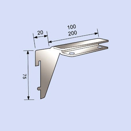 PRODUCT SO-2170 Glass Shelf Clip Shelf brackets for wooden and glass shelves. Sheet steel. Left and right side. Fits for pitch 50mm upright , steel thickness 3mm, finished in chrome. Description SO-2170-100 lLength: 100mm lHeight: 75mm lThickness: 3mm SO-2170-200 lLength: 1000mm lHeight: 75mm lThickness: 3mm Back
