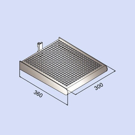 PRODUCT SO-2450 Straight Shelf Accessories for wall column & gondola. Fits for pitch 50mm upright , Shelf with holes for screwing-on adapters. Description lDepth: 360mm lLength: 300mm lThickness: 1.2mm Back