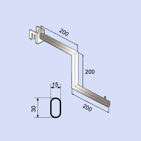 PRODUCT SO-2705 Step Arm Fits for piccolo bar , oval tube size 15 x 30mm, finished in EPC white. Description lDepth: 400mm lHeight: 200mm lOval Tube: 30 x 15mm lThickness: 2mm lFit Piccolo Bar Back