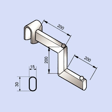 PRODUCT SO-2125 Step Arm Suitable for 15 x 30 oval rear support bar. Finish in Chrome. Description lDepth: 400mm lHeight: 200mm lOval Tube: 30 x 15mm lThickness: 2mm Back