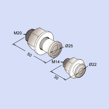 PRODUCT SO-2501 Ferrule Ferrule of pinwall system. Made of aluminum. Include nut and washer. Description SO-2501-50 lLength: 50mm lDia: 25mm SO-2501-30 lLength: 30mm lDia: 22mm Back