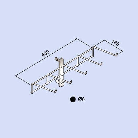 PRODUCT SO-2509 Prong Arm Prong arm uitable for pinwall system. Ø6mm steel wire finished in chrome. Description lLength: 480mm lDepth: 185mm lSteel Wire: Ø6mm Back