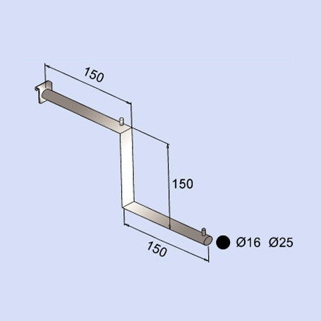 PRODUCT SO-2605 Step Arm Suitable for soclitwall system. Ø20mm tube finished in chrome. Description lDepth: 300mm lHeight: 150mm lRound Tube: Ø20mm Back