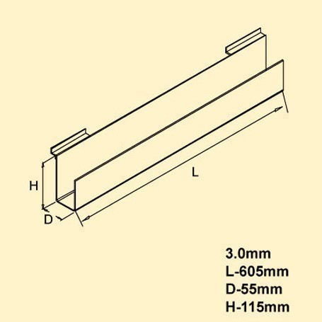 PRODUCT SO-3818 Cassette Rack Suitable for slatwall system. Made of Acrylic. Description lLength: 605mm lDepth: 55mm lHeight: 115mm lThickness: 3.0mm Back