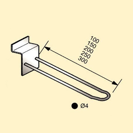PRODUCT SO-3140 Double Hook Ø4mm wire display Euro hook for slatwall system. Finished in chrome. Description SO-3140-100 lDepth: 100mm lSteel Wire: Ø4mm SO-3140-150 lLength: 150mm lSteel Wire: Ø4mm SO-3140-200 lDepth: 200mm lSteel Wire: Ø4mm SO-3140-250 lDepth: 250mm lSteel Wire: Ø4mm SO-3140-300 lDepth: 300mm lSteel Wire: Ø4mm Back