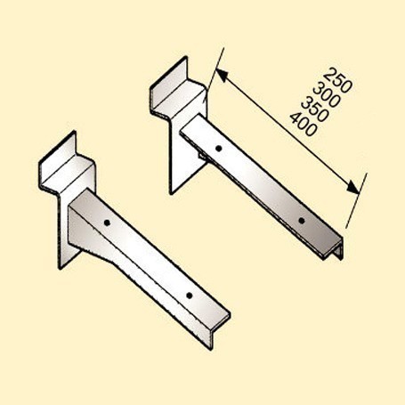 PRODUCT SO-3230 Timber Shelf Bracket Angular shelf brackets for wooden and glass shelves. Sheet steel. Left and right side. Suitable for slatwall system. Steel thickness 3mm. Finished in chrome. Description SO-3230-250 lDepth: 250mm SO-3230-300 lDepth: 300mm SO-3230-350 lDepth: 350mm SO-3230-400 lDepth: 400mm Back