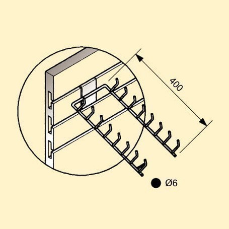 PRODUCT SO-3120 Racket Display Racket Display accessory for slatwall system, finished in chrome. Description lDepth: 400mm lSteel Wire: Ø6mm Back