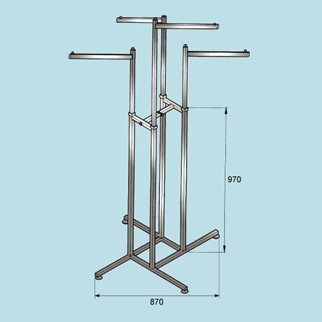 PRODUCT SO-4400 Quick Turn 4 Way Unit Quick Turn 4 Way Unit. Easy to assemble. 4 way base with 4pcs adjustable straight arm. Base Tube size 1" x 1". Adjustable foot. Finished in chrome. Description lLength: 870mm lHeight: 970mm Back