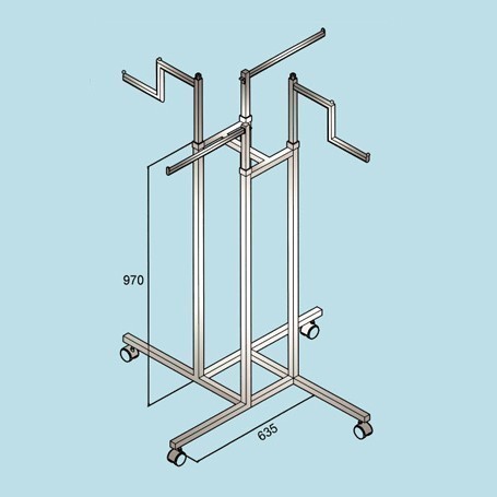 PRODUCT SO-4420 Quick Turn 4 Way Unit Quick Turn 4 Way Unit. Easy to assemble. 4 way base with 2pcs adjustable straight arm 2pcs Adjustable step arm.. Base Tube size 1" x 1". High quality castors. Finished in chrome. Description Back
