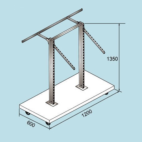 PRODUCT SO-4625 Suit Unit Suit Unit. Knock-down design. Easy to assemble. With 1 trousers hanging rail & 2 sloping suit coat hanging arms. Base Tube size 1" x 1". 1200 x 600 MDF base, white plastic-laminated. High quality castors. Finished in chrome. Description Back