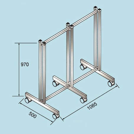 PRODUCT SO-4106 6 Way Base 6 Way base. Knock-down design easy to assemble. Base Tube size 1" x 2". Upright tube size 1" x 1". High quality castors. Finished in chrome. Flexible for different accessories. Description lLength: 1085mm lWidth: 500mm lHeight: 970mm Back