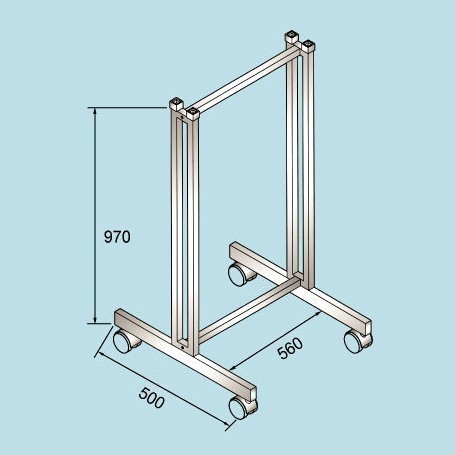 PRODUCT SO-4109 4 Way Base 2 Way base. Knock-down design easy to assemble. Base Tube size 1" x 2". Upright Tube size 1" x 1". High quality castors. Finished in chrome. Flexible for different accessories. Description lLength: 560mm lWidth: 500mm lHeight: 970mm Back