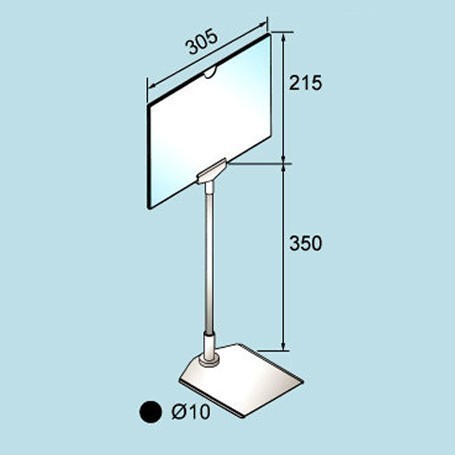 PRODUCT SO-4601 A4 Sign Holder A4 Sign Holder with metal base. Knock-down design. Ø10mm rod sign holder finished in chrome. Horizontal A4 size transparent acrylic. Description Back