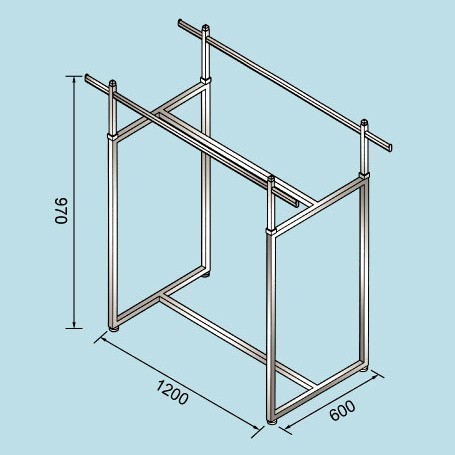 PRODUCT SO-4085 H-Garment Stand H-Garment Stand. Knock-down design easy assemble. Base tube size: 1" x 1" Adjustable feet. Description lLength: 1200mm lWidth: 600mm lHeight: 970mm Back