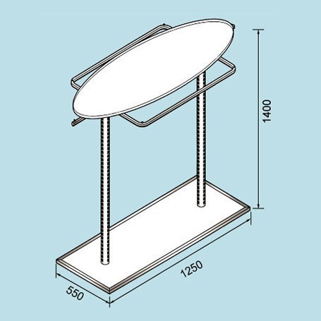 PRODUCT SO-4670 Fashion Gondola Fashion Gondola. Round wall column upright. Suitable for pitch 50mm accessories. Knock-down design easy assemble. With White MDF board plastic-laminated. Hign quality castors. Description lLength: 1250mm lWidth: 550mm lHeight: 1400mm Back