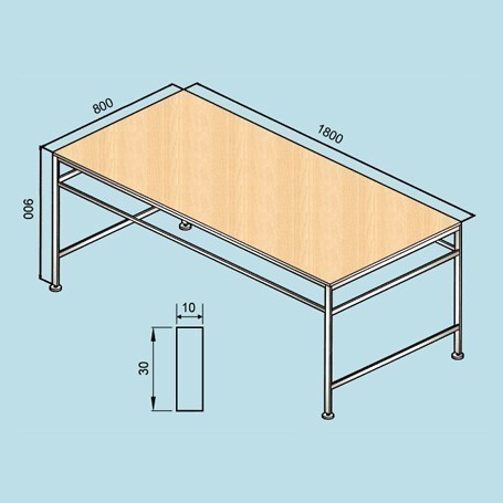 PRODUCT SO-4829 Centre Sales Table Centre Sales Table. Knock-down design easy to assemble. 18mm MDF base cover plastic-laminated. Table farme finished in chrome. Adjustable feet. Description lLength: 1800mm lWidth: 800mm lHeight: 900mm Back
