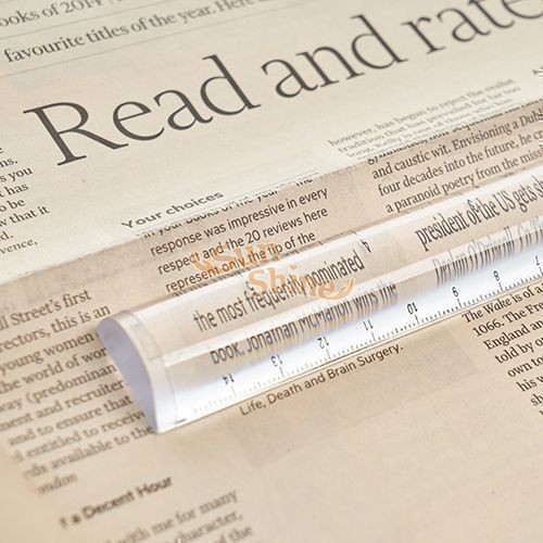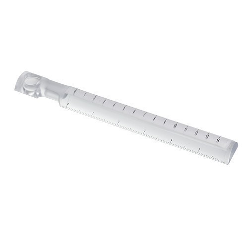 PRODUCT RA-6427 Bar Magnifier ● Size / 209 x 25mm ● Weight / 52g ● Magnification / 2x Description The long bar magnifier is an ideal for people who have difficulty in reading and viewing small details. Can also be used as a ruler measured in inches and centimeters. It features lightweight and easy to carry. Back
