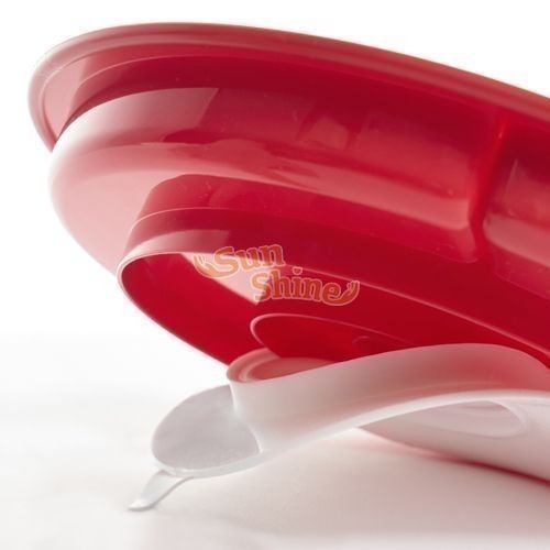 PRODUCT HA-4246 Divided Plate ● Dia / 230mm ● Height / 39mm ● Weight / 210g ● Color available in white and red. ● Microwave & household dishwasher safe up to 70ºC except the suction base. ● DO NOT use UV light to disinfect the product. Description Segregated compartments allow food to be placed separately on the plate. It has a non-slip suction base which fixes easily to the bottom of the plate to prevent the plate from slidingwhilst eating. Back