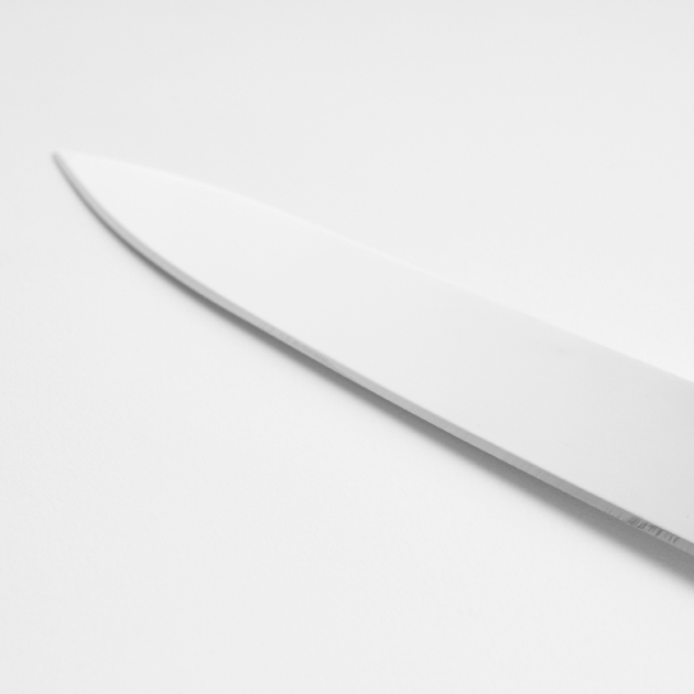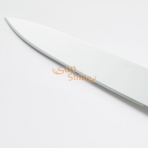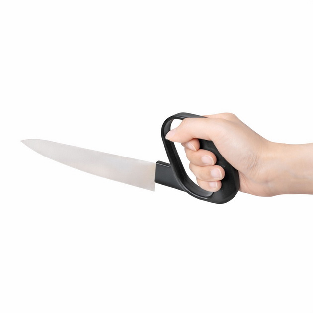 PRODUCT HA-4191 Chef Knife ● Blade Length / 196mm ● Weight / 122g ● Household dishwasher safe up to 70ºC. ● DO NOT use UV light to disinfect the product. Description An ergonomic easy to grip contoured closed handle with stainless blades at an angle for maintaining the hand and wrist in a natural stress-free position minimizing effort when cutting. Back