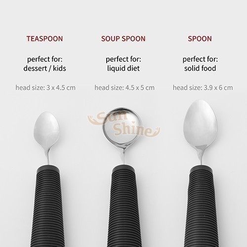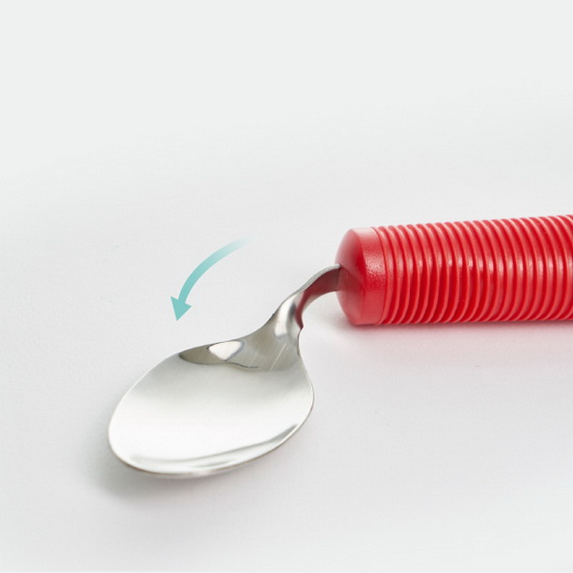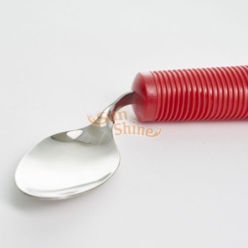 PRODUCT HA-4291 Bendable Spoon ● Length / 210mm ● Weight / 80g ● Color available in black and red. ● Household dishwasher safe up to 70ºC. ● DO NOT use UV light to disinfect the product. Description The soft cushion grip is comfortable and easy to hold. It has a flexible section to allow them to be bent to any angle. Back
