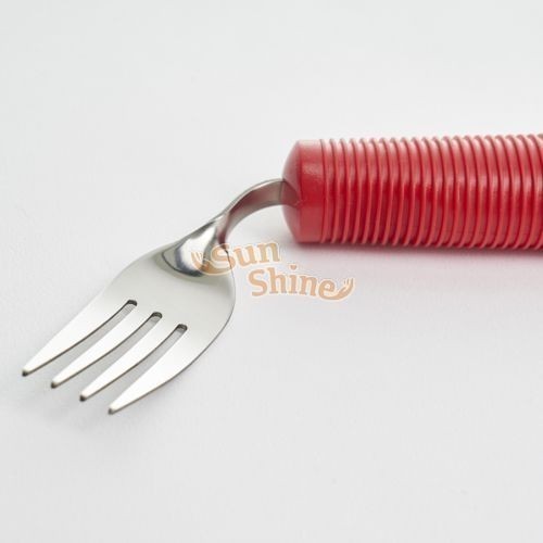PRODUCT HA-4295 Bendable Fork ● Length / 205mm ● Weight / 75g ● Color available in black and red. ● Household dishwasher safe up to 70ºC. ● DO NOT use UV light to disinfect the product. Description The soft cushion grip is comfortable and easy to hold. It has a flexible section to allow them to be bent to any angle. Back