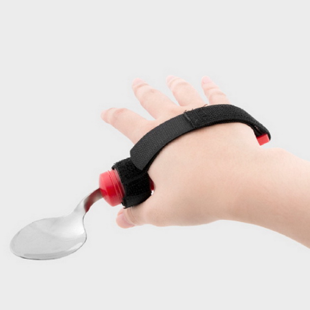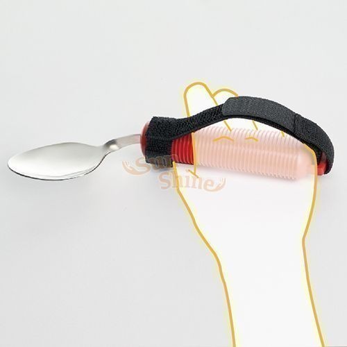 PRODUCT HA-4196 Utensil Strap ● Unfold Size / 232 x 120mm ● Weight / 5g ● Hand wash only. ● DO NOT use UV light to disinfect the product. ● This item did not include the spoon. Description This is ideal for people with a limited grip. Simply attach the strap to the utensil and slip a hand through the loop. It fits almost any hand. Back