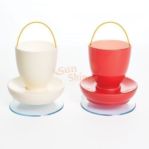 PRODUCT HA-4265 Egg Cup (1pair) ● Cup Dia / 47mm ● Weight / 45g ● Color available in white and red. ● Household dishwasher safe up to 70ºC except the suction base. ● DO NOT use UV light to disinfect the product. ● Supplied in pair (same color). Description It has a suction disc to keep the egg cup in place. Ideal for one handed eating. Back