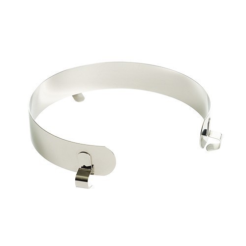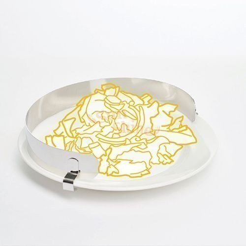 PRODUCT HA-4253 Stainless Plate Guard ● Fits plate's size 8.5" to 10" ● Weight / 105g ● Household dishwasher safe. ● NOT microwavable. Description Get maximum durability and cleanliness with the stainless steel plate guards. Spring action clip. Back