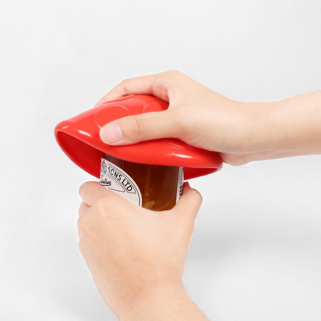 PRODUCT HA-4283 Non-Slip Opener ● Dia / 120mm ● Height / 60mm ● Weight / 52g Description This cone shaped rubber with protruding round grips on the outside and ribbing on the inside gives a good grip for opening and closing twist-off jar lids and bottle caps. Back