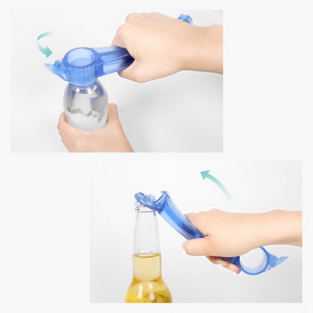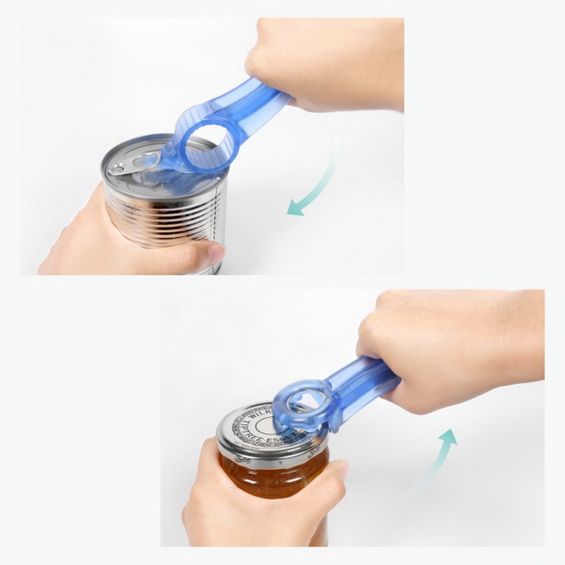 PRODUCT HA-4287 4-in-1 Multi Opener ● Size / 205 x 50 x 42mm ● Weight / 67g Description Used to open pressure sealed caps, resealable twist-off bottle caps, ring pull cans and jar lids. The wrench-style plastic opener has an ergonomic handle enabling the user to open and to remove caps, ring pulls or lids easily and safely. Back