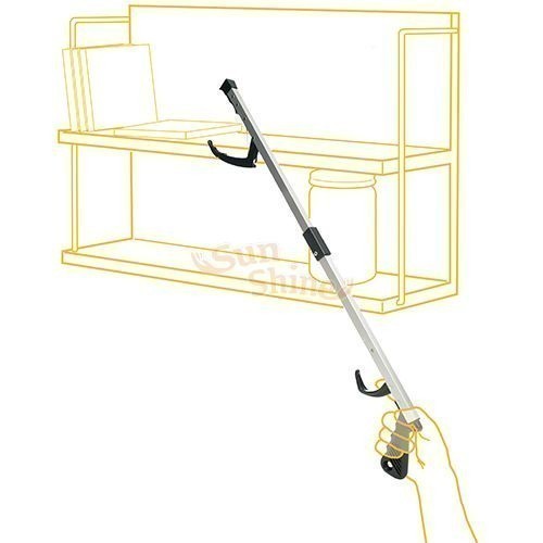 Designed to assist in reaching, lifting and picking up objects from the floor, table or shelf. Constructed with a cord running through the tube, which operates the plastic jaw and allows the reacher to be folded in the centre for ease of storage and transportation. It is ideal for people who have difficulty in bending or reaching up or outwards.
