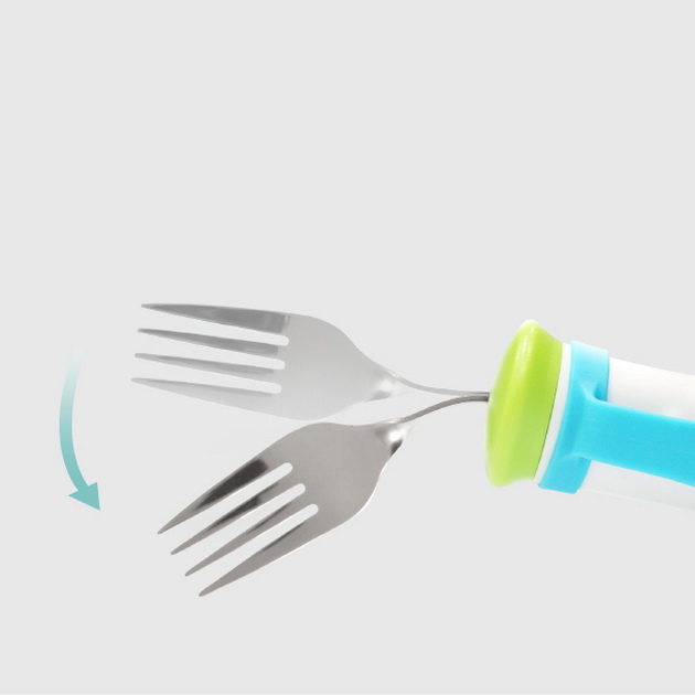 PRODUCT HA-4385 Bendable Fork (Unweighted) ● Length / 230mm ● Weight / 116g ● Household dishwasher safe up to 70ºC. ● DO NOT use UV light to disinfect the product. ● The weights are excluded. Description It can be bent to the left or right according to the user’s need. The wide handle with a detachable strap can provide assistance for people who have difficulty gripping. ※You can purchase the weight separately. Weighted design can help to make your hand more stable and so reduce the inconvenience resulting from hand tremble. The weight can be adjusted to suit the user’s need. Back