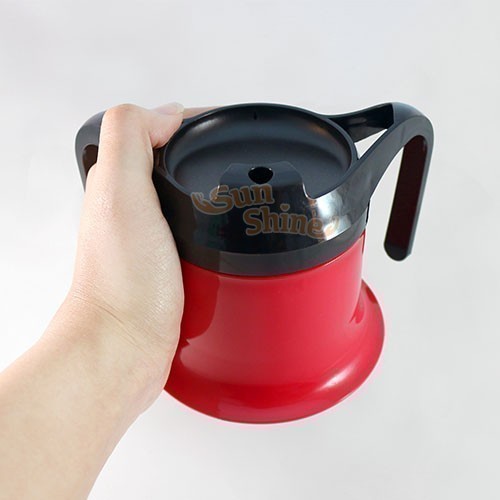 PRODUCT HA-4267 Tumbler ● Size / 153 x 110 x 117mm ● Capacity / 250ml ● Weight / 115g ● Color available in red and white. ● Household dishwasher safe. ● NOT microwavable. ● DO NOT use UV light to disinfect the product. Description The special curved shaped bottom is designed to prevent the Tumbler from being overturned. The ergonomic angel shaped twin handles are designed to make the Tumbler easier to hold. The small raised spout makes drinking easier. Back
