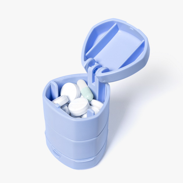 PRODUCT HA-4129 3-in-1 Pill Splitter ● Size / 44 x 42 x 66mm ● Weight / 58g ● Not suitable for capsule. ● DO NOT use in the dishwasher. ● DO NOT use UV light to disinfect the product. Description The 3 in 1 Pill Splitter combines three functions which are storing, splitting and grinding of medicine. It is suitable for carrying and easy to clean. Back