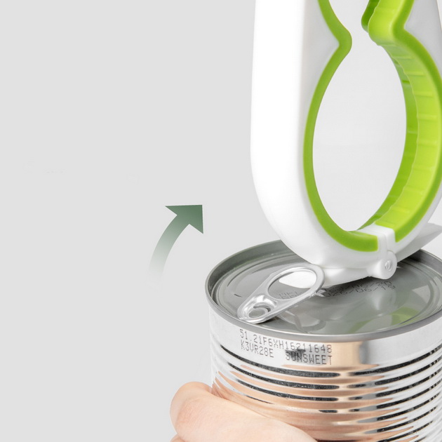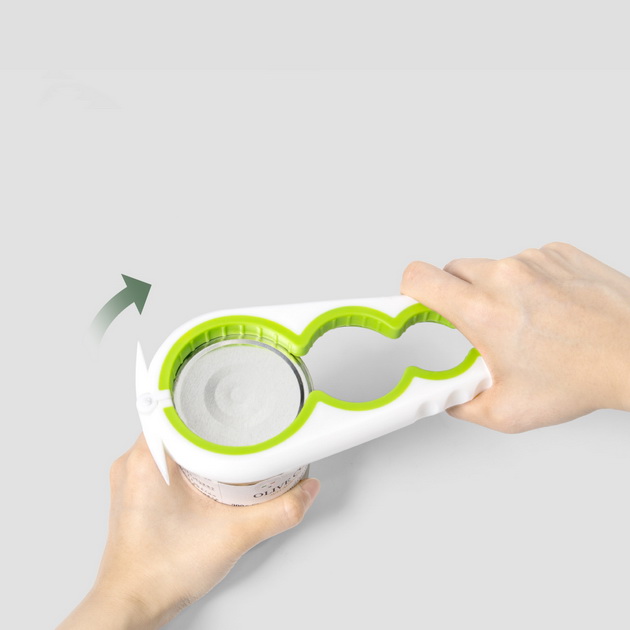 PRODUCT HA-4281 5-in-1 Jar Opener ● Length / 228mm ● Weight / 116g ● Fit lids size from 25mm-85mm Description With four different sized openig and a non-slip interior, it can easily fit various size of screws-top lids. The hook at the top is designed for opening pull-tab cans. Back
